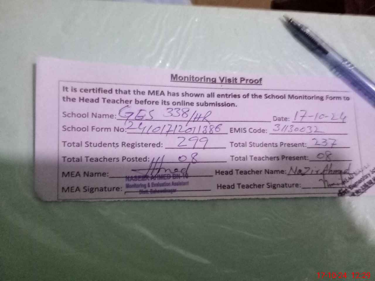 | EMIS Code: 31130032 | Name of School: GES CHAK 338/HR | |||