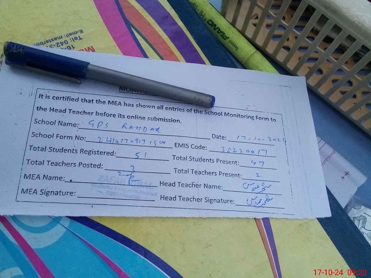 | EMIS Code: 38220017 | Name of School: GPS RAHDARI | |||
