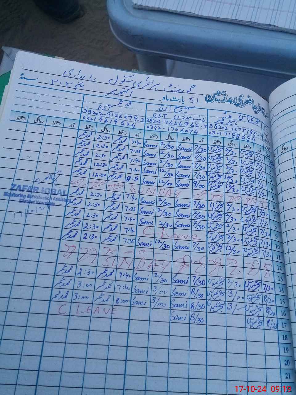 | Name: SH**** AB**** Designation: (School Headmaster's/Headmistress's) PST Phone/Cell Number: 03**** |