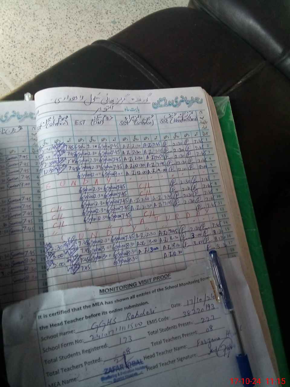 | Attendance Register | Head Teacher | MEA with School | Visit Proof |