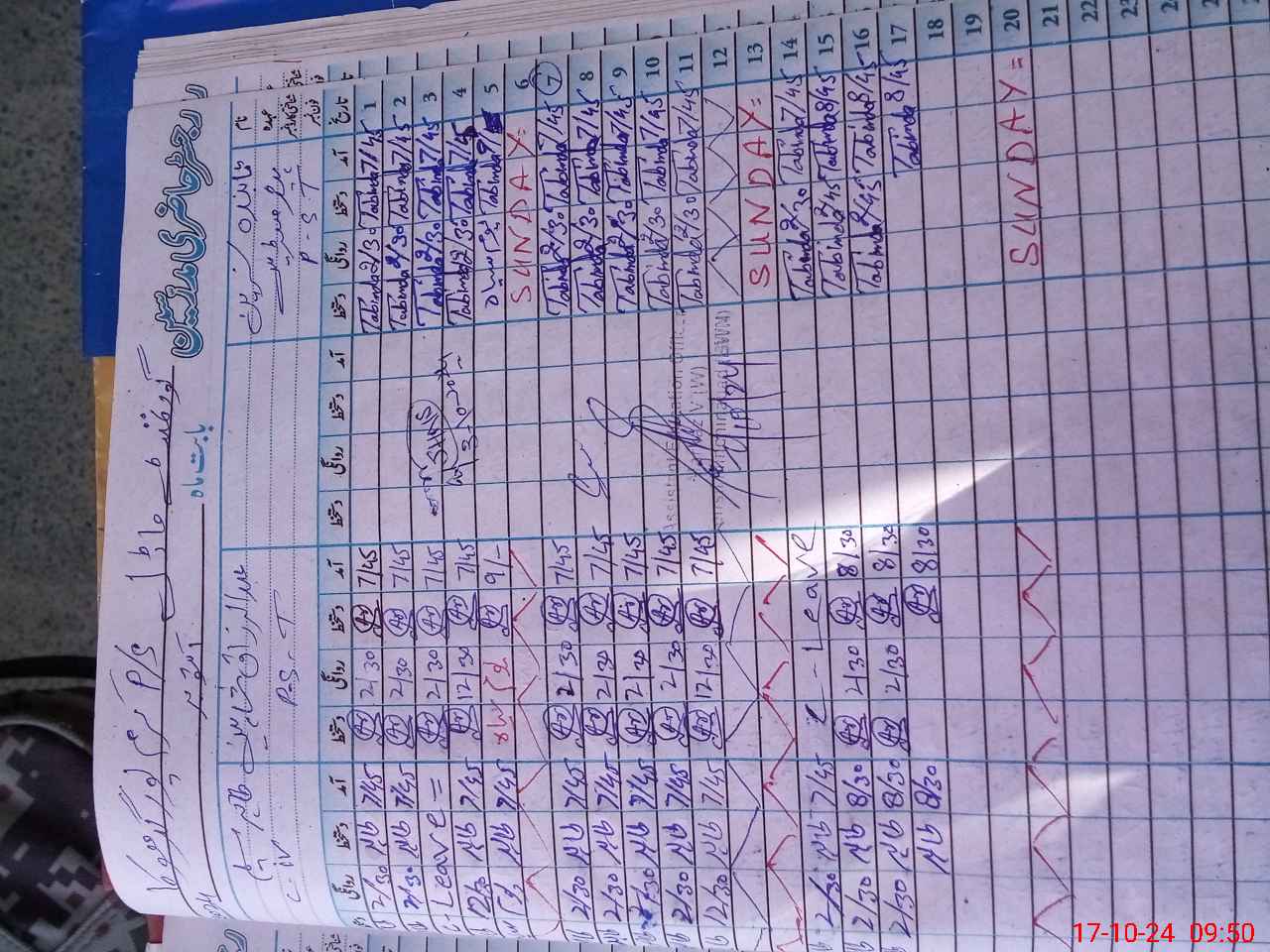 | CNIC | Full Name | Designation | R/C | Absence During Last Calender Month |