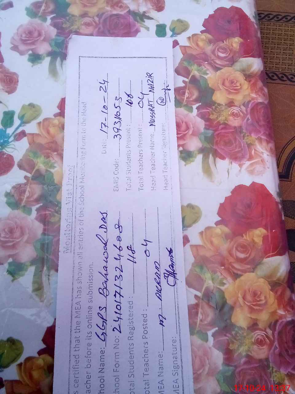 | EMIS Code: 39311053 | Name of School: GGPS BAHAWAL DAS | |||