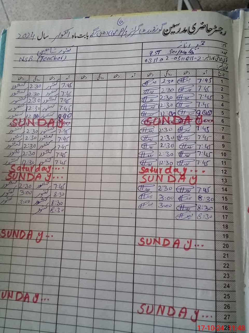 | Remarks (Use Separate Page if Required): NSB RECORD NOT UPDATED NO AEO VISIT IN LAST MONTH SCHOOL IS ON STRIKE AND STUDENTS ATTENDANCE IS ZERO | |||||