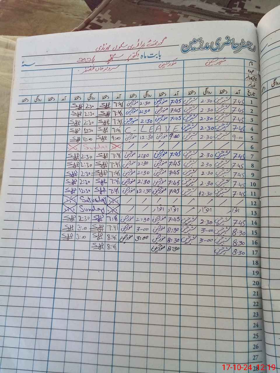 | CNIC | Full Name | Designation | R/C | Absence During Last Calender Month |