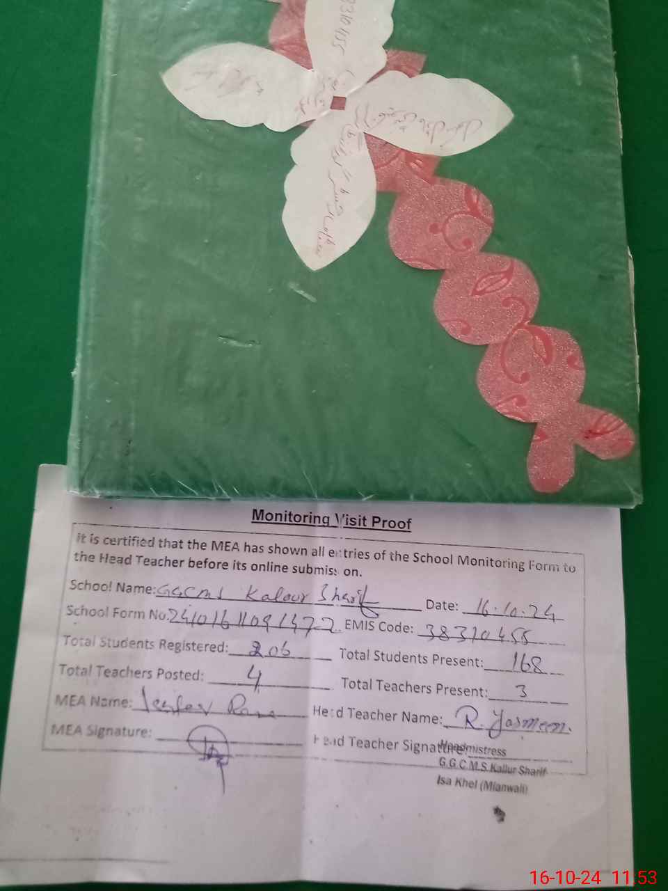 | EMIS Code: 38310455 | Name of School: GGCMS KALOOR SHARIF | |||