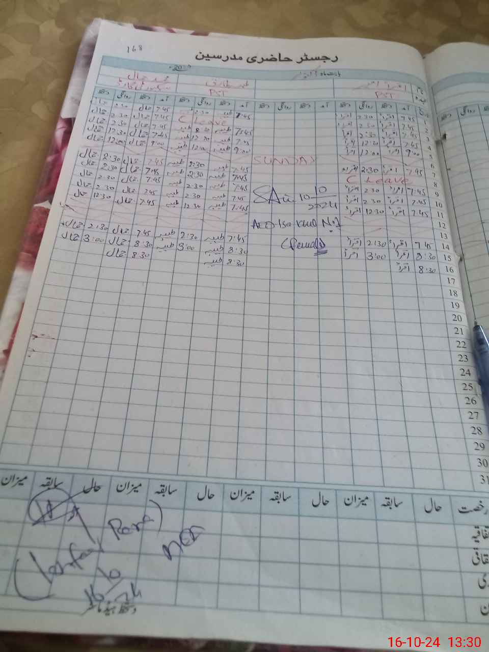 | Leave | Duty | Absent | Maternity | Medical | Ex- Pak |