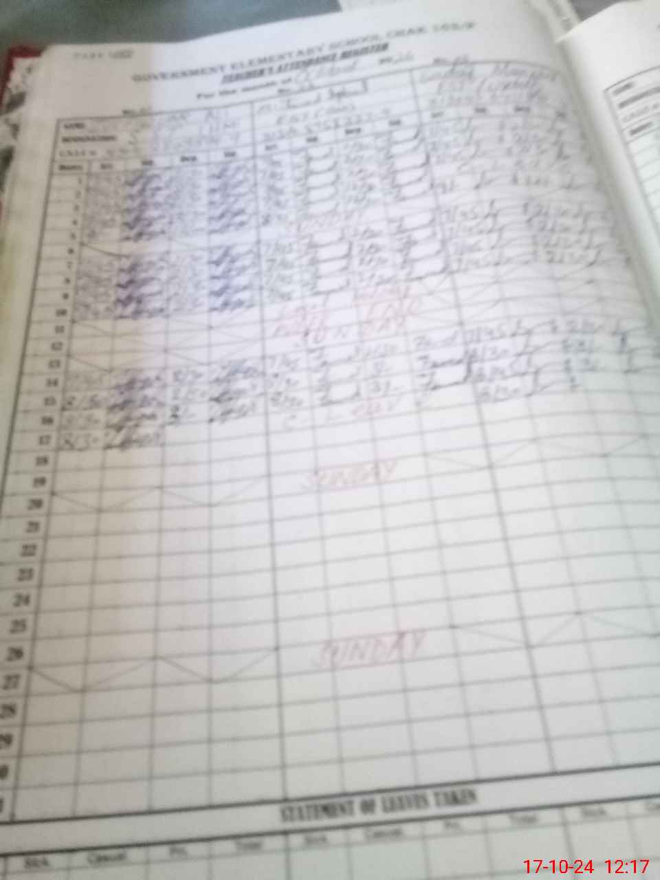 | CNIC | Full Name | Designation | R/C | Absence During Last Calender Month |