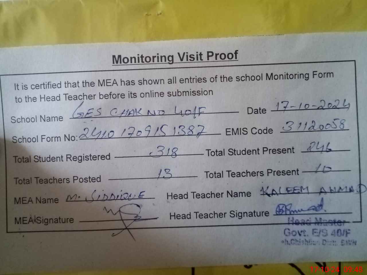| EMIS Code: 31120058 | Name of School: GES CHAK NO 40/F | |||