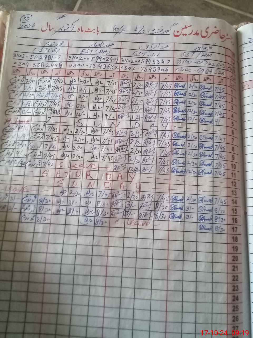 | Leave | Duty | Absent | Maternity | Medical | Ex- Pak |
