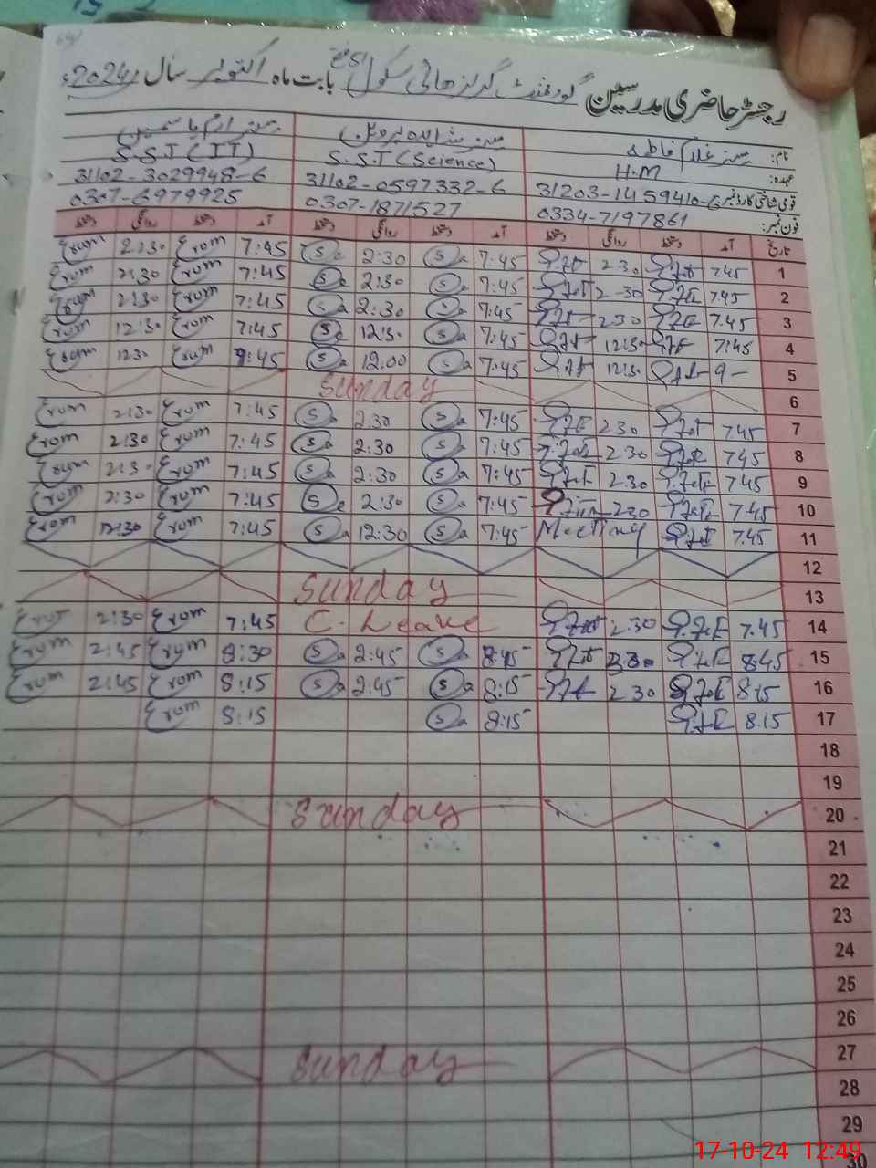 | Name: Sh**** Pe**** Designation: (School Headmaster's/Headmistress's) SST Sci Phone/Cell Number: 03**** |