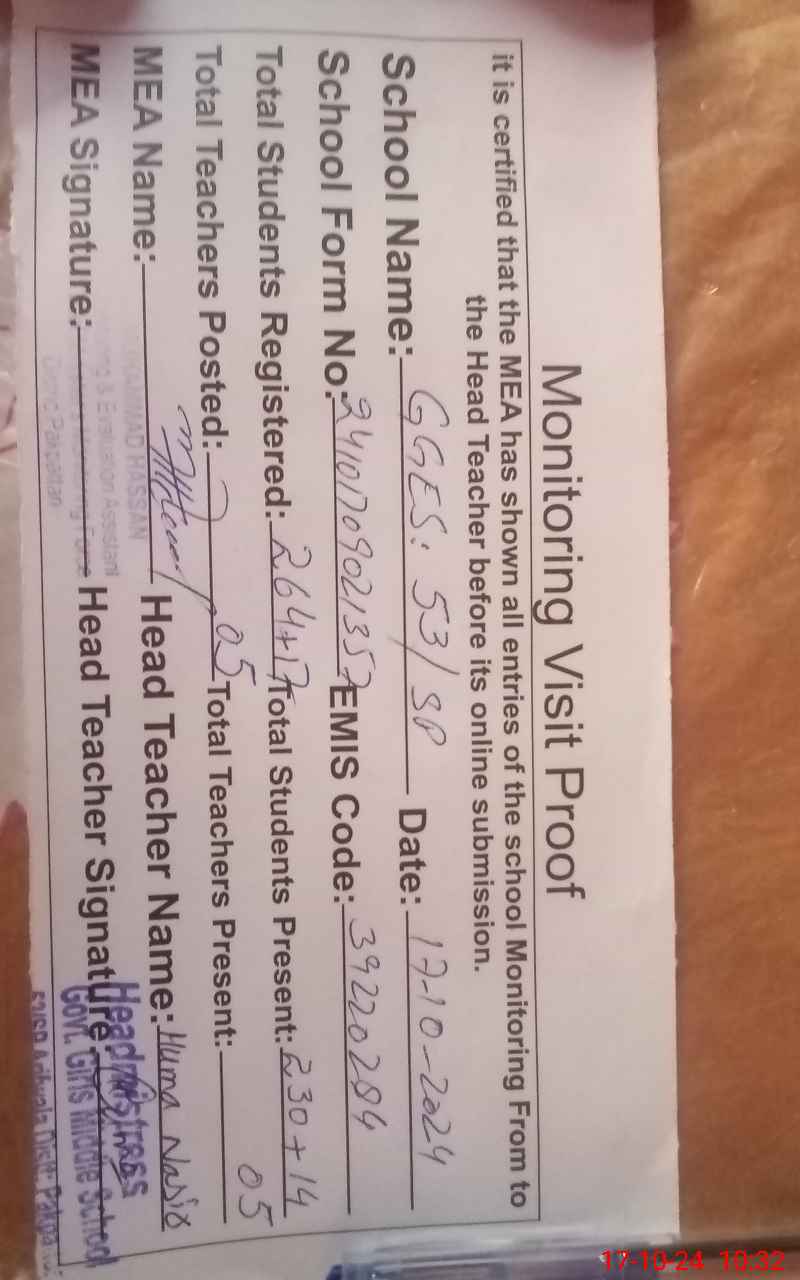 | EMIS Code: 39220284 | Name of School: GGES 53 SP POST OFFICE JEVEN SHAH | |||