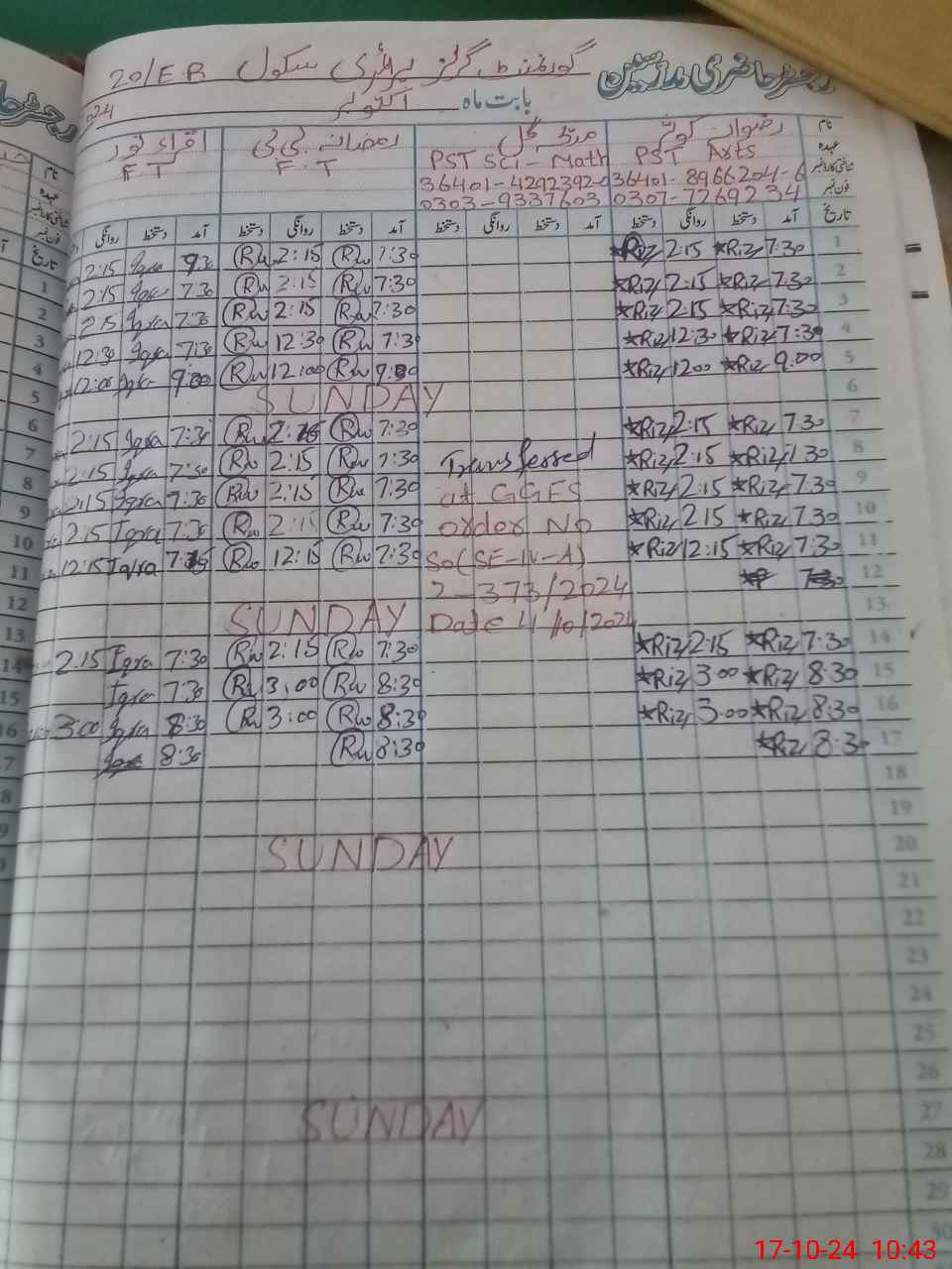 | Name: Sh**** Kh**** Designation: (School Headmaster's/Headmistress's) EST Phone/Cell Number: 03**** |