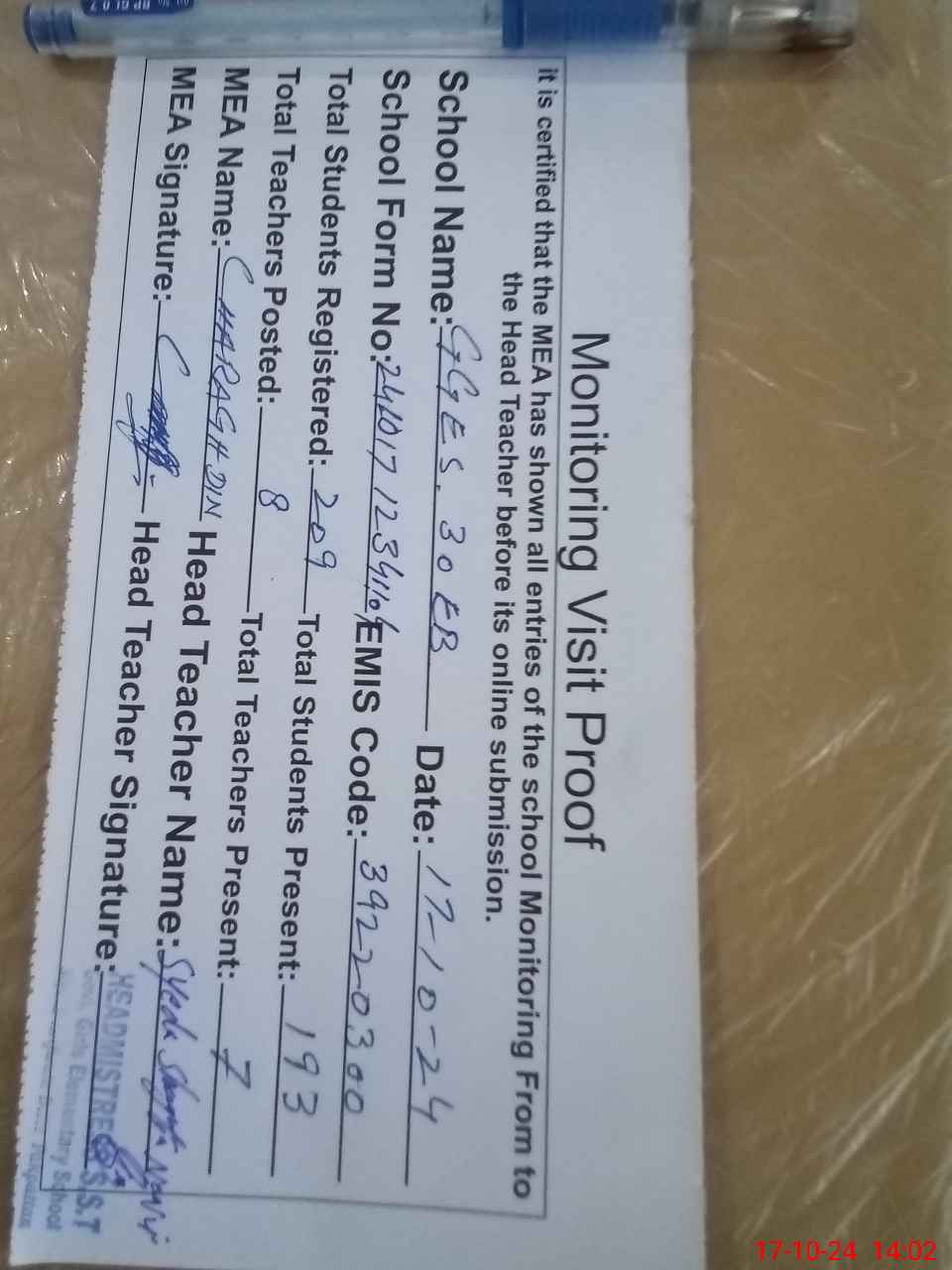 | EMIS Code: 39220300 | Name of School: GGES 30 EB KALAN | |||