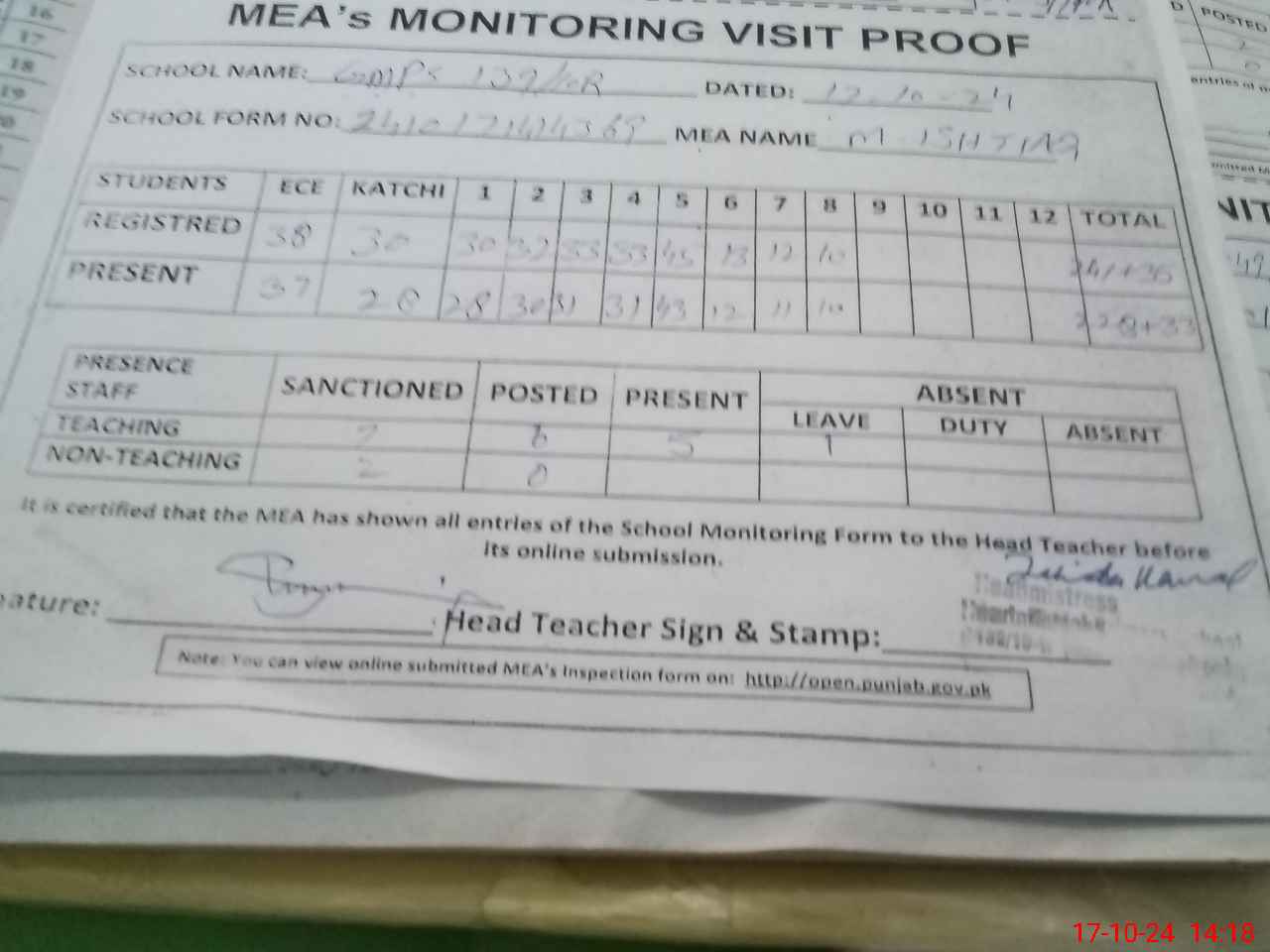 | EMIS Code: 36440533 | Name of School: GMPS 139/10-R JADEED, JAHANIAN | |||