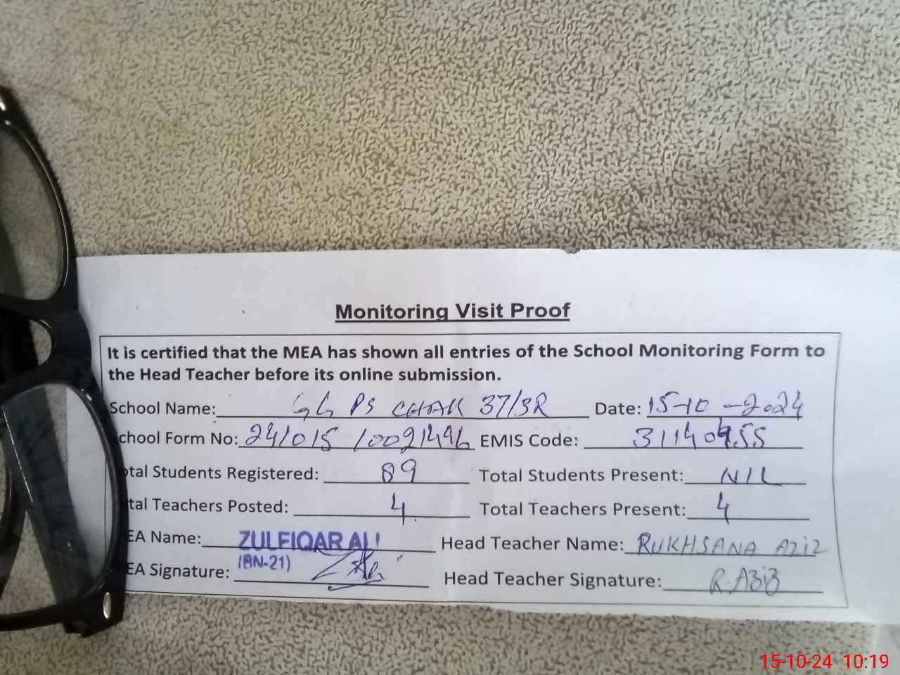 | EMIS Code: 31140455 | Name of School: GGPS CHAK NO. 37/3-R | |||