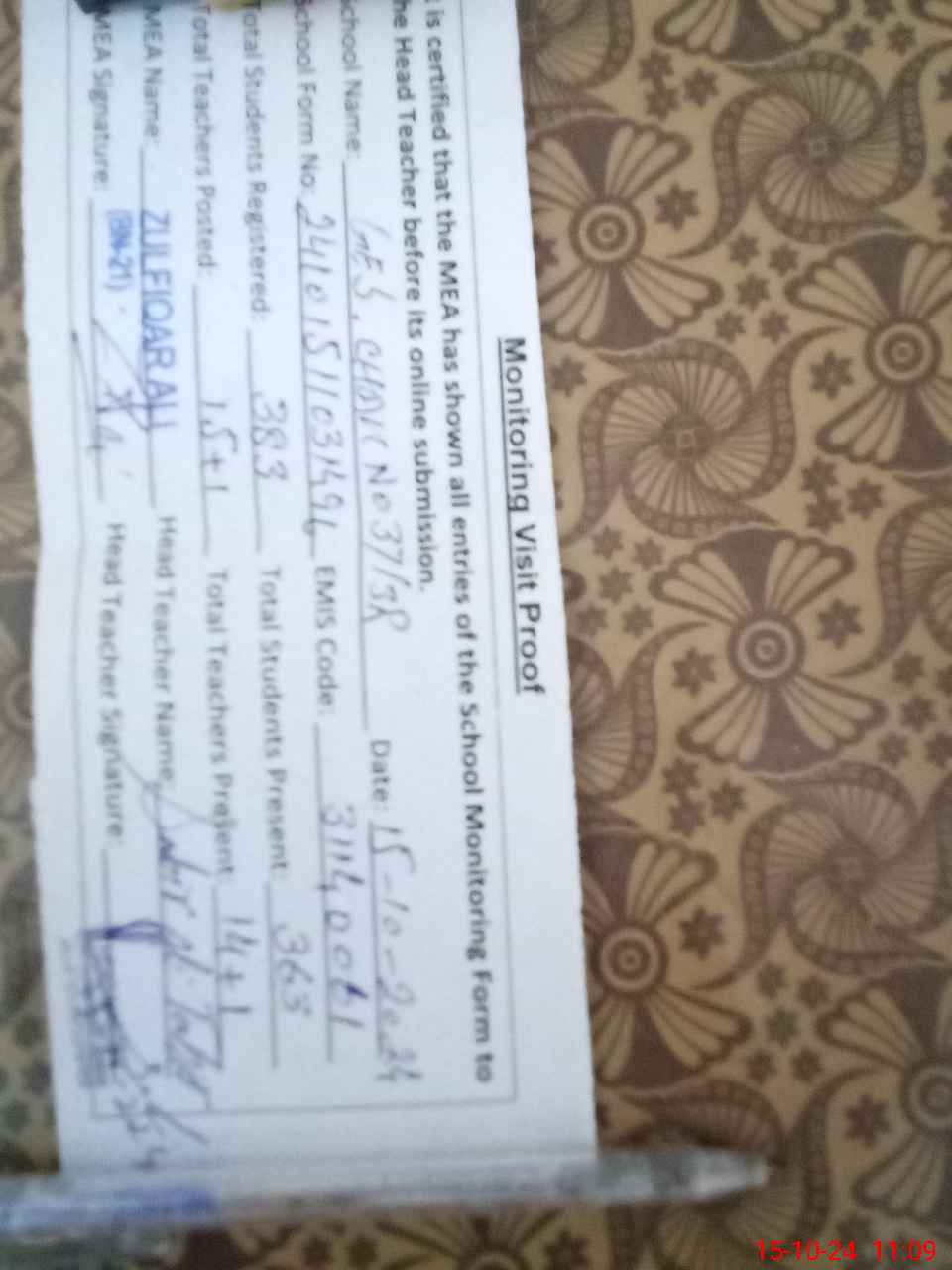 | Certified that this School was Inspected by the Undersigned MEA/DMO Today and the Information Stated Above is as Per Record. | |||||