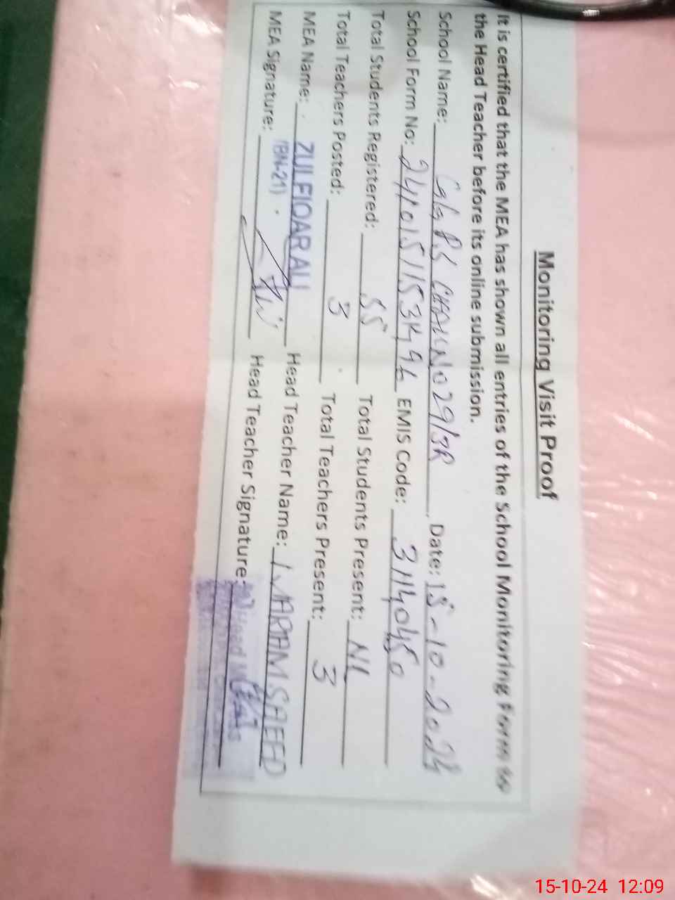 | EMIS Code: 31140450 | Name of School: GGPS CHAK NO. 29/3-R | |||