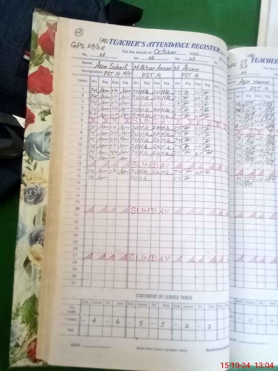 | Leave | Duty | Absent | Maternity | Medical | Ex- Pak |