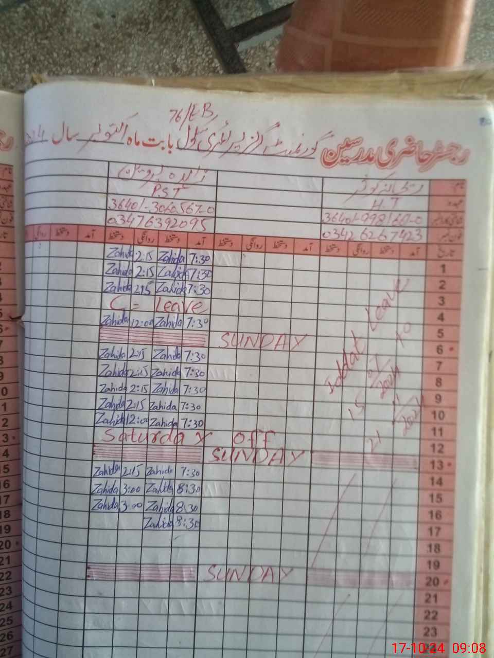 | CNIC | Full Name | Designation | R/C | Absence During Last Calender Month |