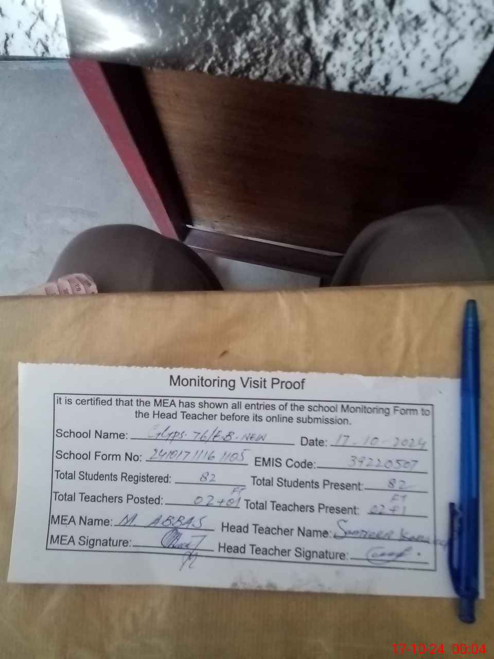 | EMIS Code: 39220507 | Name of School: GGPS CHAK NO. 76/EB (NEW) | |||