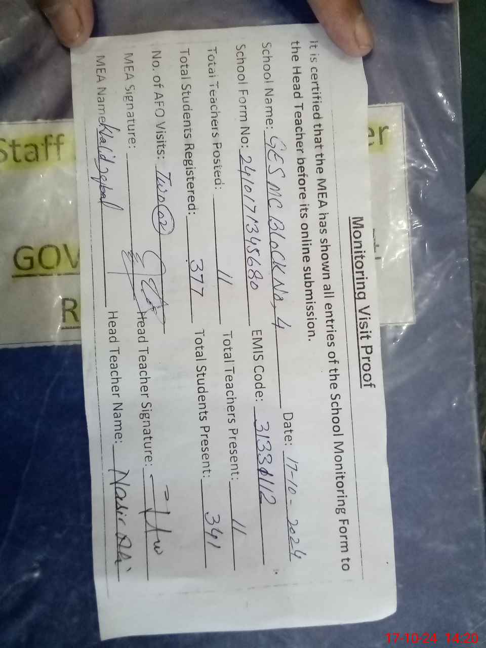 | EMIS Code: 31331112 | Name of School: GES MC BLOCK NO. 4 | |||