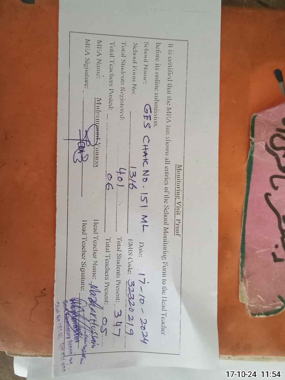 | EMIS Code: 32320219 | Name of School: GES CHAK NO. 151/ML | |||