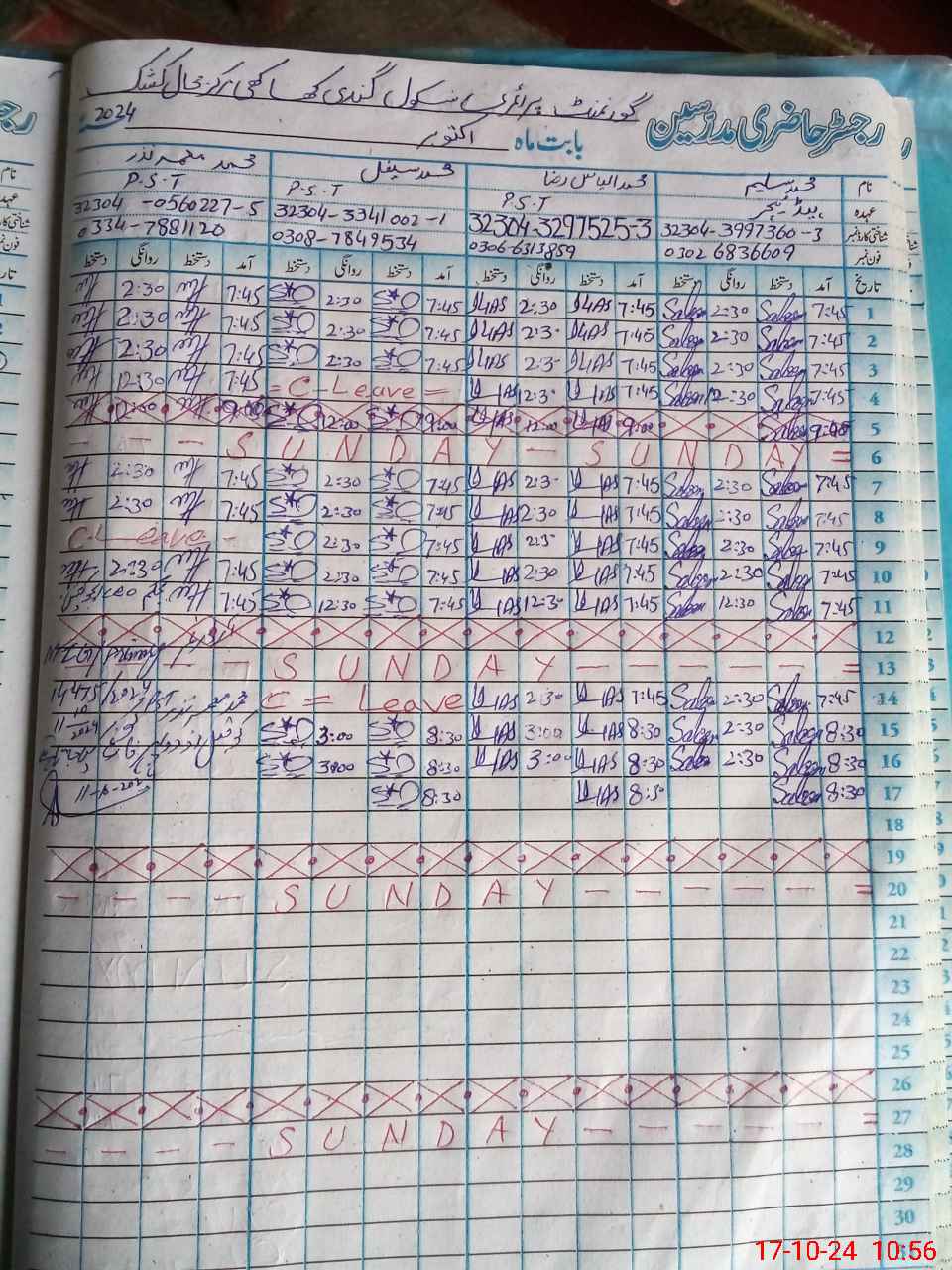| Name: M.**** Designation: (School Headmaster's/Headmistress's) PST/PTC/JV Phone/Cell Number: 03**** |