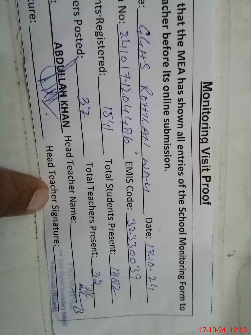 | EMIS Code: 32330039 | Name of School: GGHSS ROHILLAN WALI | |||
