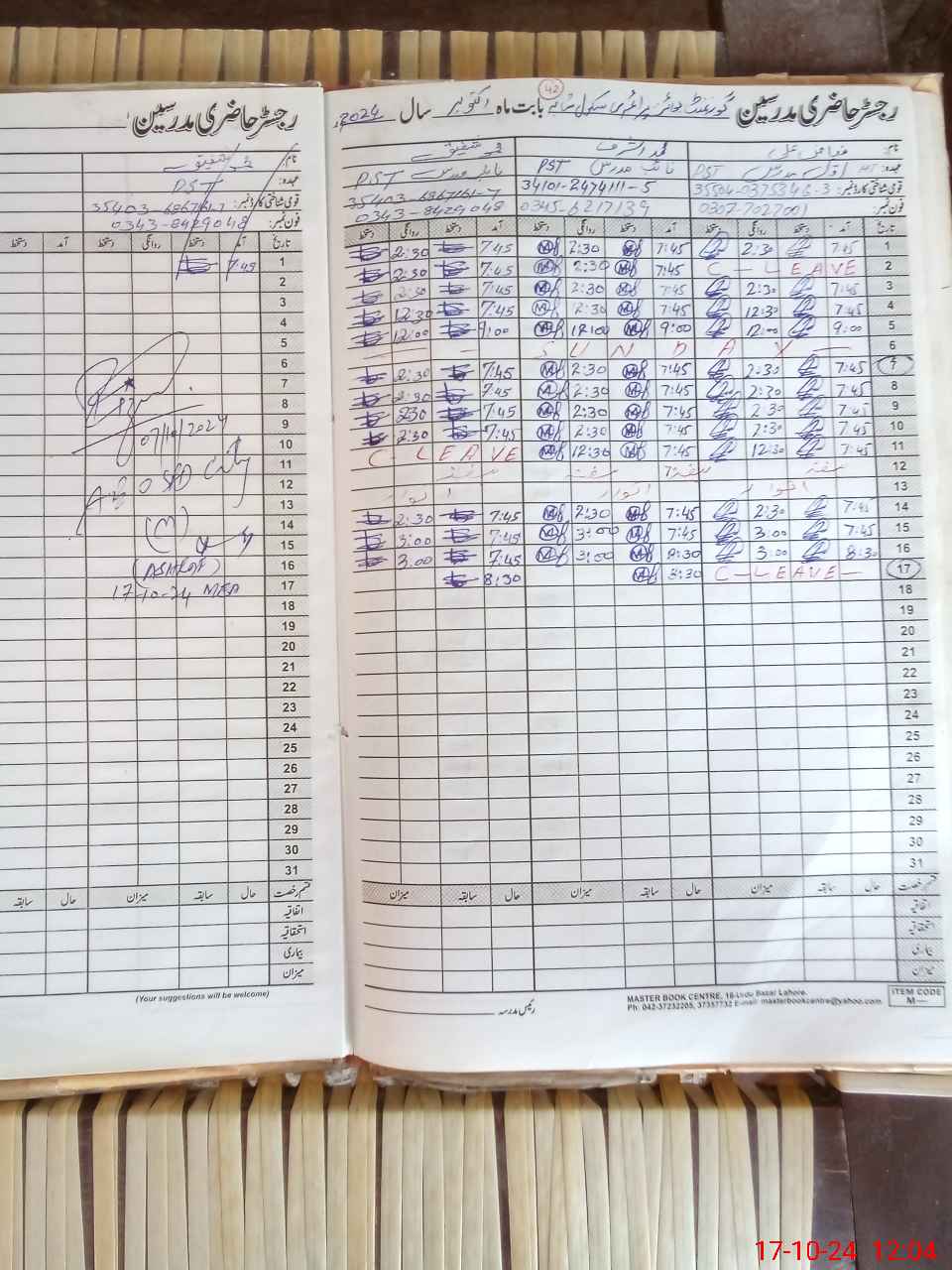 | CNIC | Full Name | Designation | R/C | Absence During Last Calender Month |