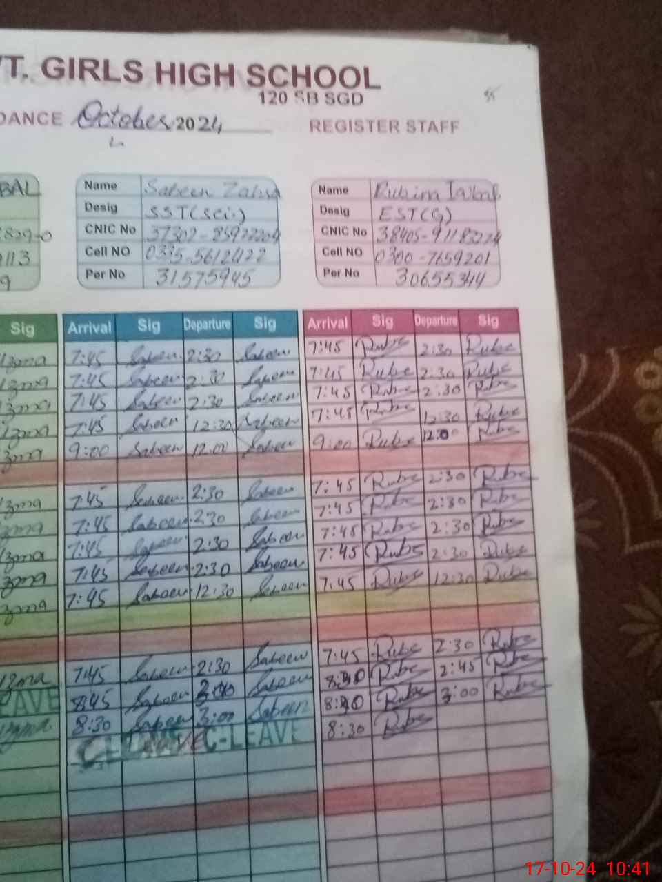 | Name: Sa**** Za**** Me**** Designation: (School Headmaster's/Headmistress's) S.S.T.(Sci) Phone/Cell Number: 03**** |