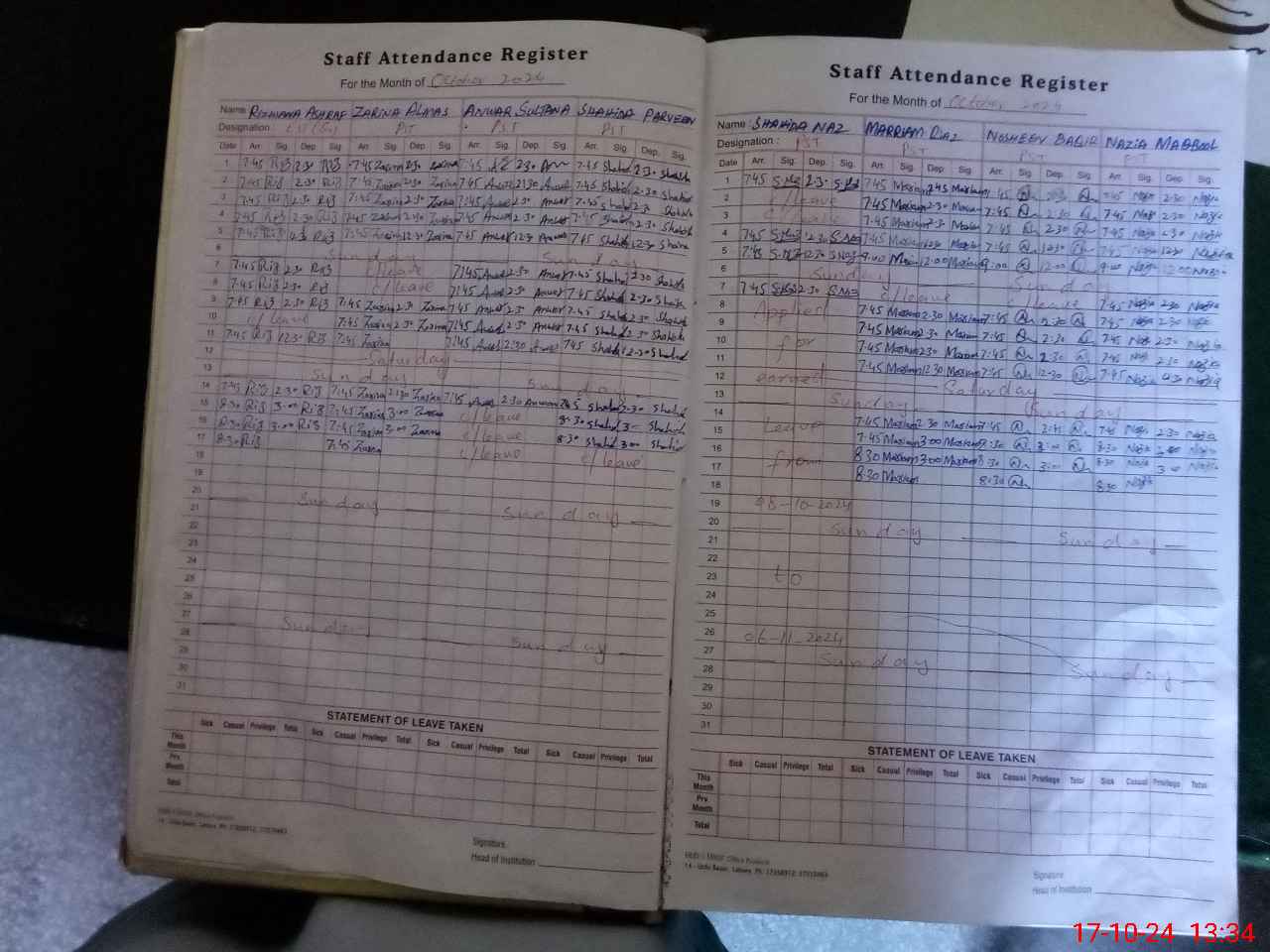 | Leave | Duty | Absent | Maternity | Medical | Ex- Pak |