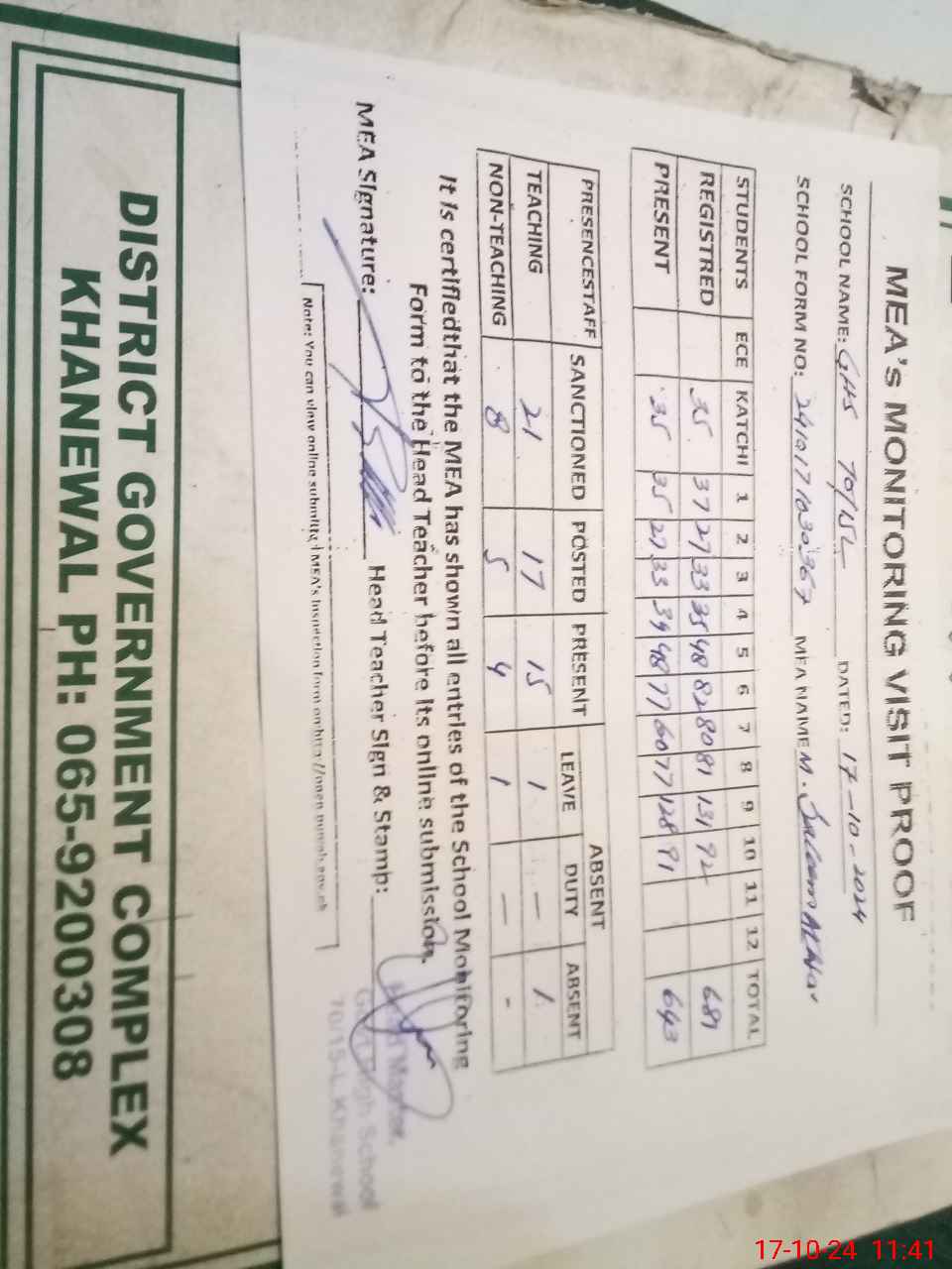 | EMIS Code: 36420651 | Name of School: GHS 70/15-L, KHANEWAL | |||