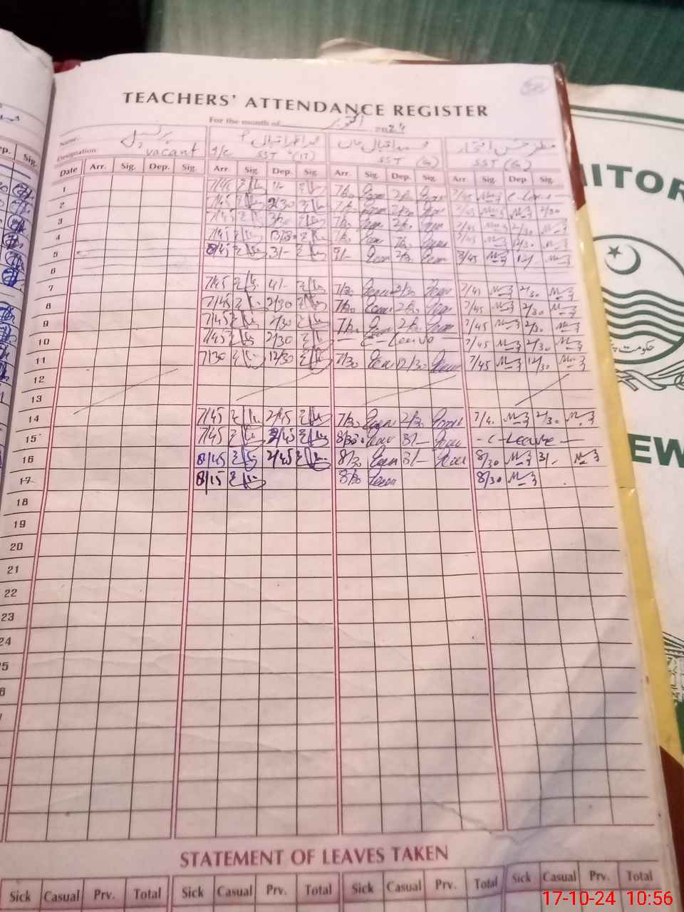 | 36**** | Mu**** Ah**** | 1 | 0 | 0 | 30 | 0 | 0 | 0 | 0 | 0 | 0 | Absent (Un-Authorized) | |