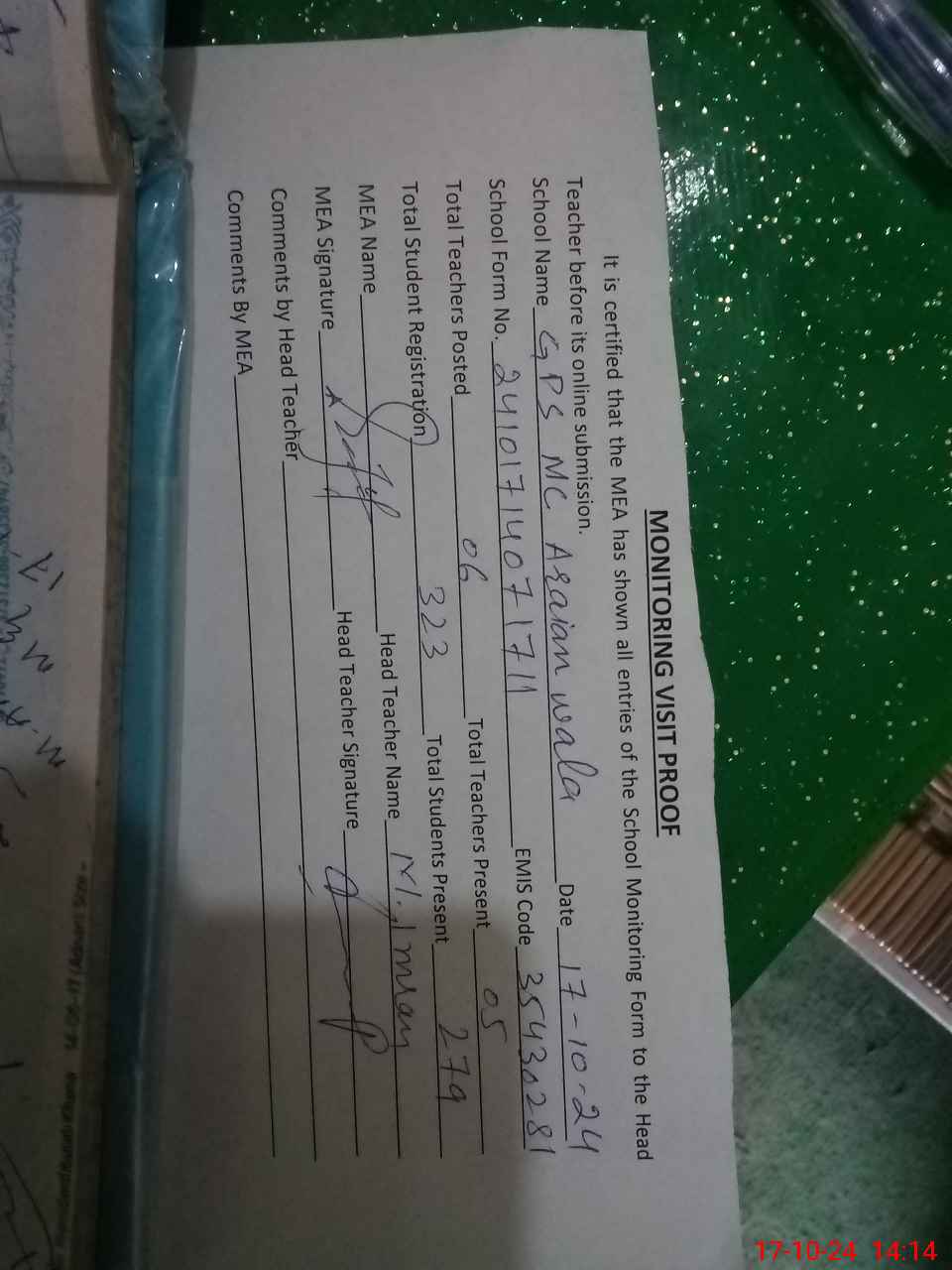 | EMIS Code: 35430281 | Name of School: GPS MC ARANIAN WALA | |||