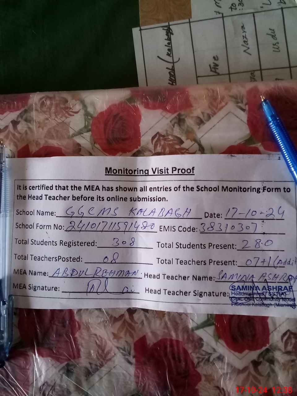 | EMIS Code: 38310307 | Name of School: GGCMS RAILWAY STATION KALA BAGH | |||