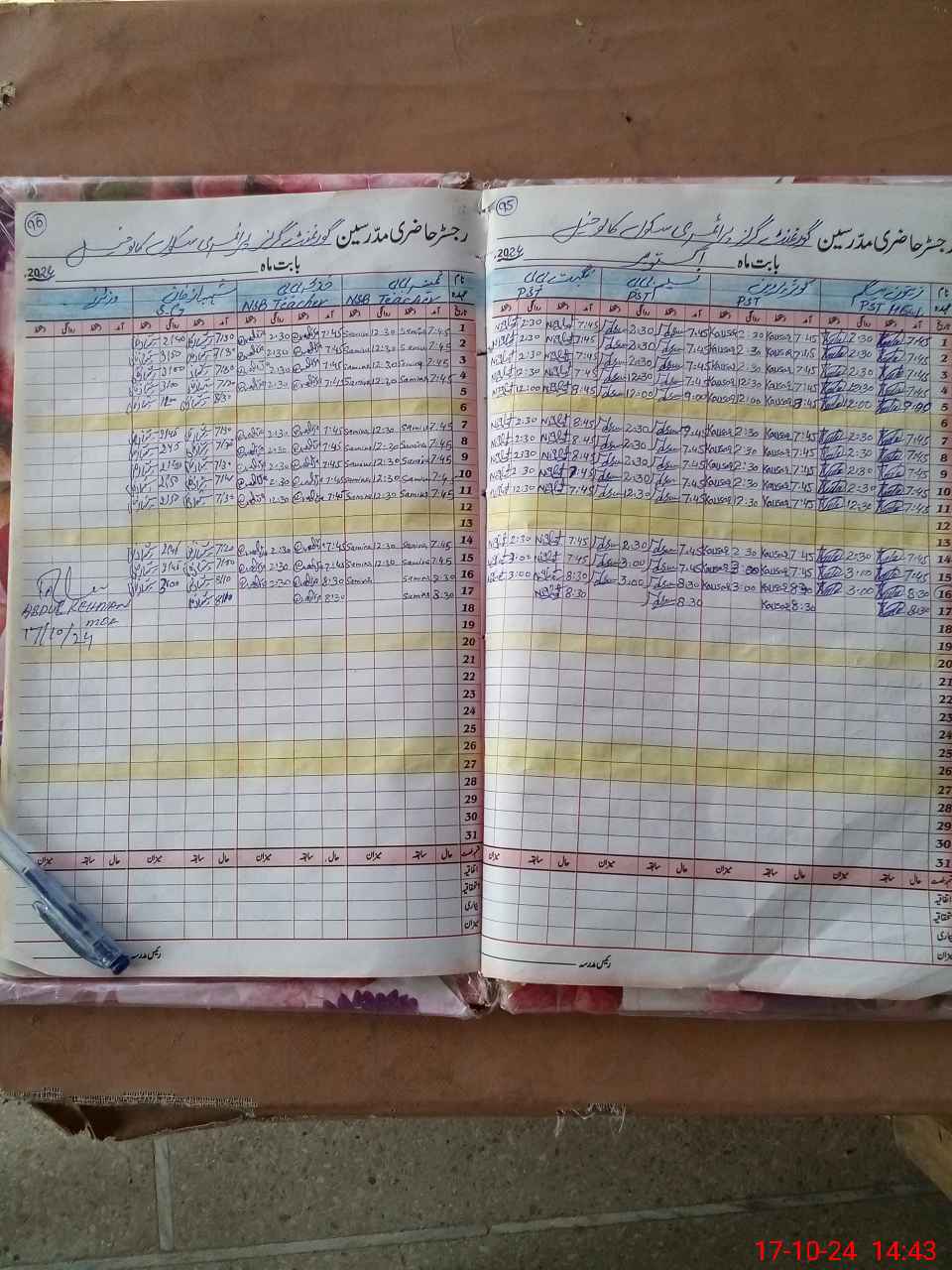 | CNIC | Full Name | Designation | R/C | Absence During Last Calender Month |