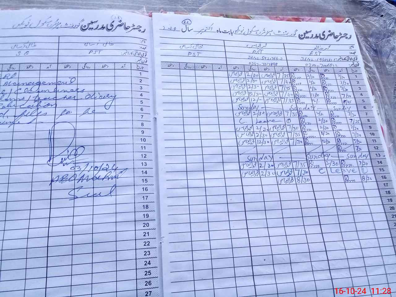 | Name: MKh**** Designation: (School Headmaster's/Headmistress's) EST Phone/Cell Number: 03**** |