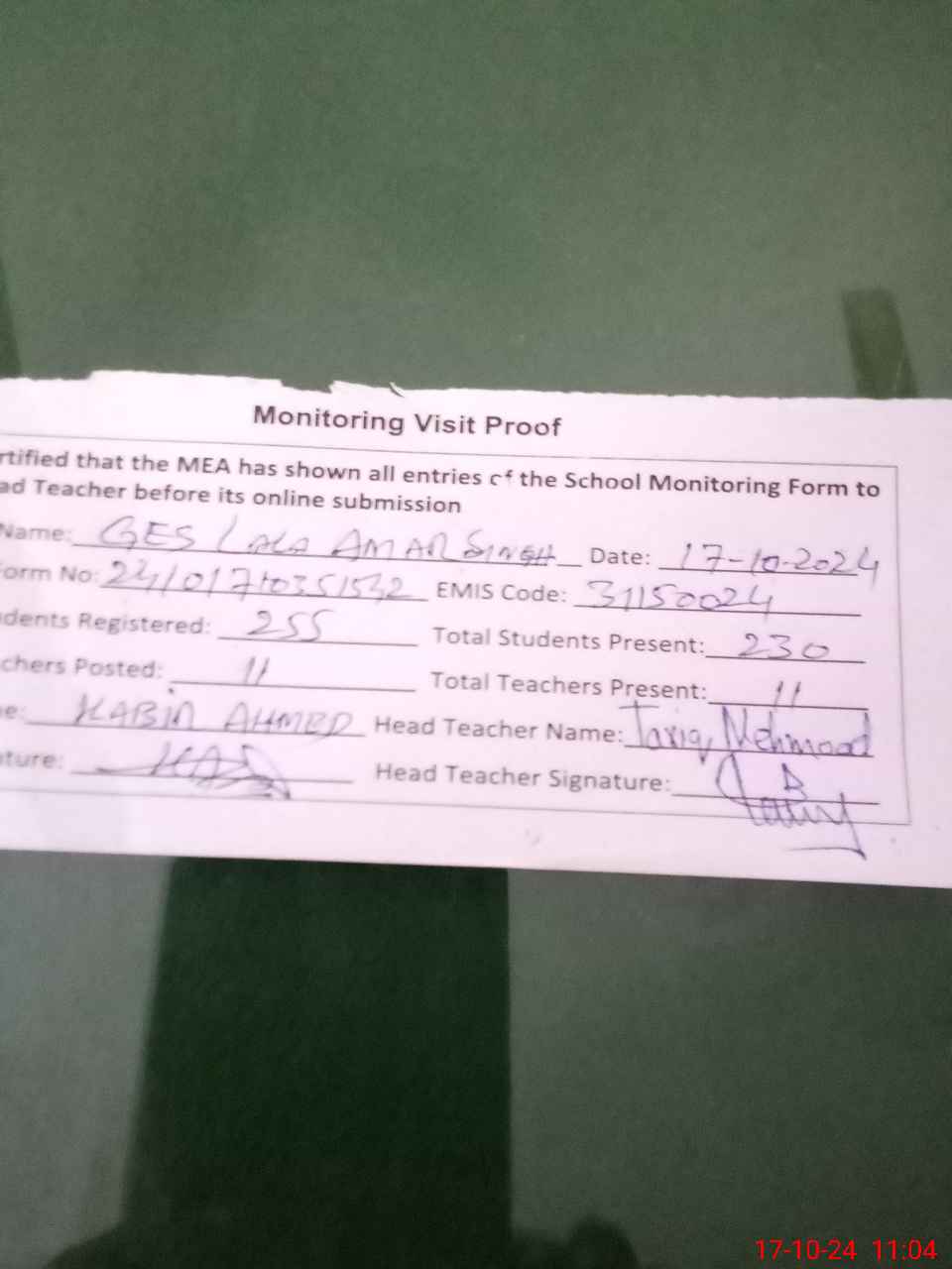 | EMIS Code: 31150024 | Name of School: GES LALA AMIR SINGH | |||