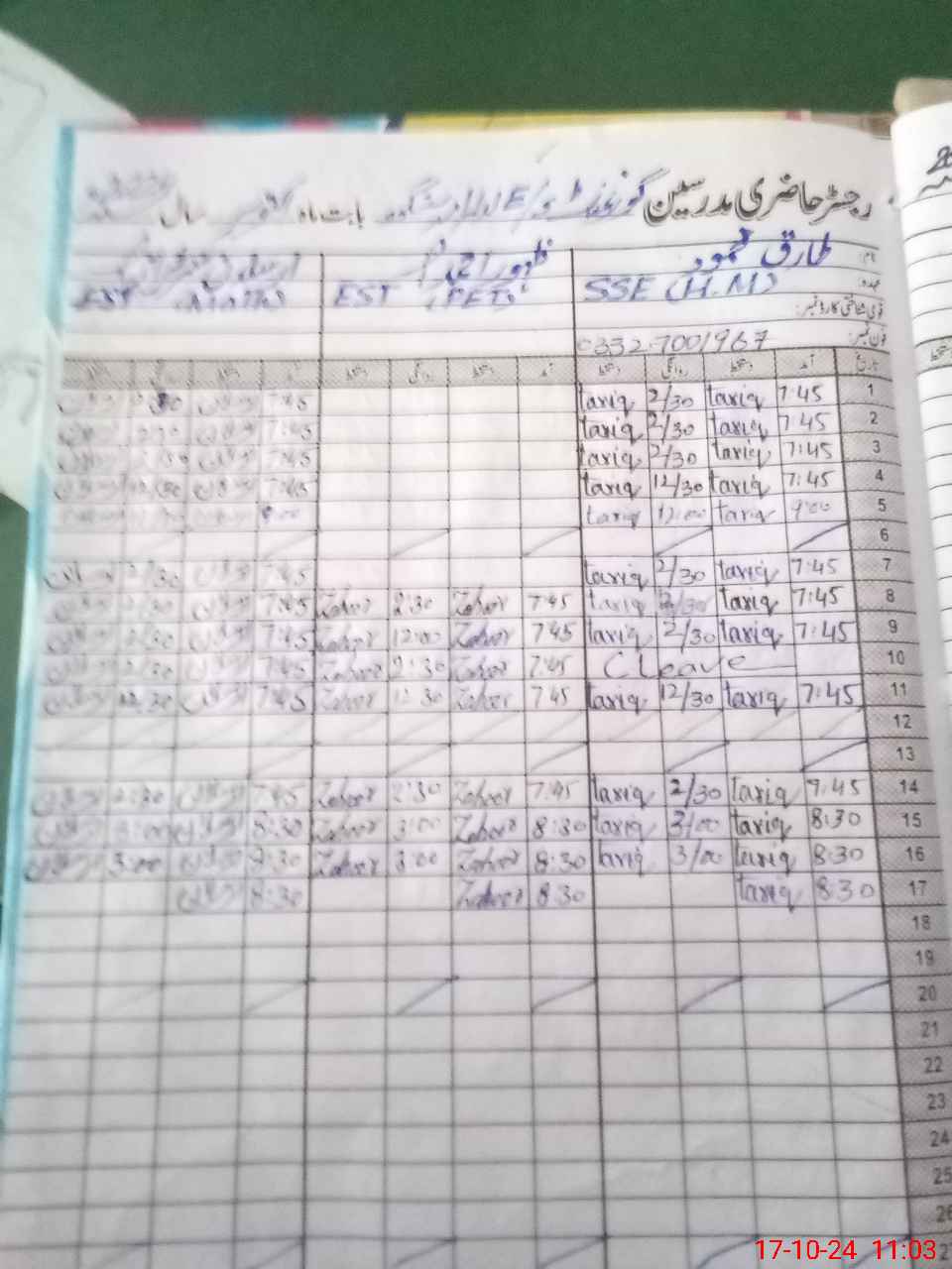 | Name: TA**** ME**** Designation: (School Headmaster's/Headmistress's) SSE (URDU) Phone/Cell Number: 03**** |