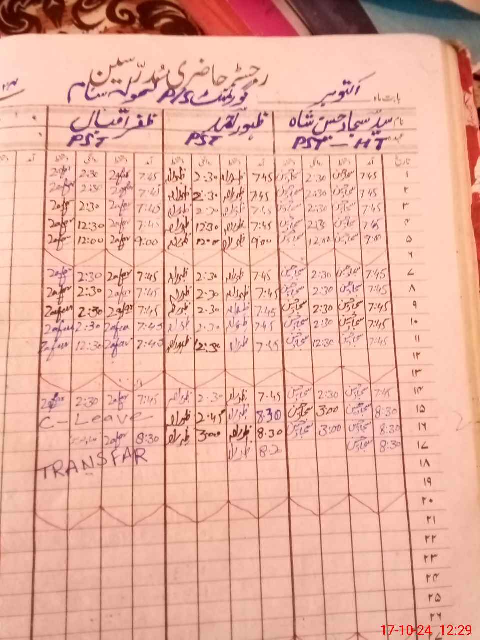 | Name: Sy**** Sa**** Hu**** Sh**** Designation: (School Headmaster's/Headmistress's) PST Phone/Cell Number: 03**** |
