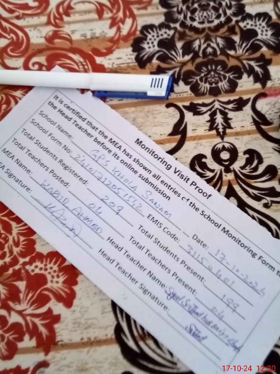 | EMIS Code: 31150401 | Name of School: GPS KHOLA SANAM | |||