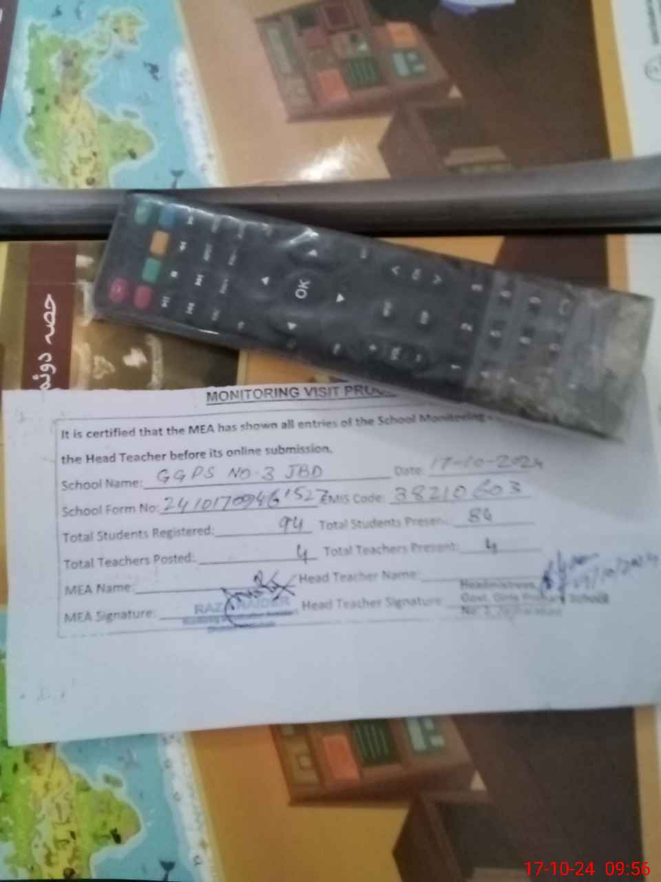 | Attendance Register | Head Teacher | MEA with School | Visit Proof |