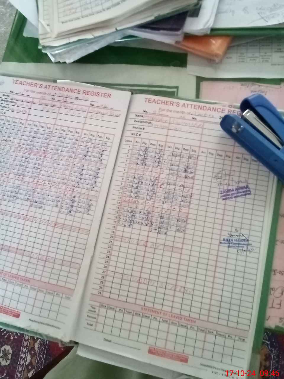 | CNIC | Full Name | Designation | R/C | Absence During Last Calender Month |