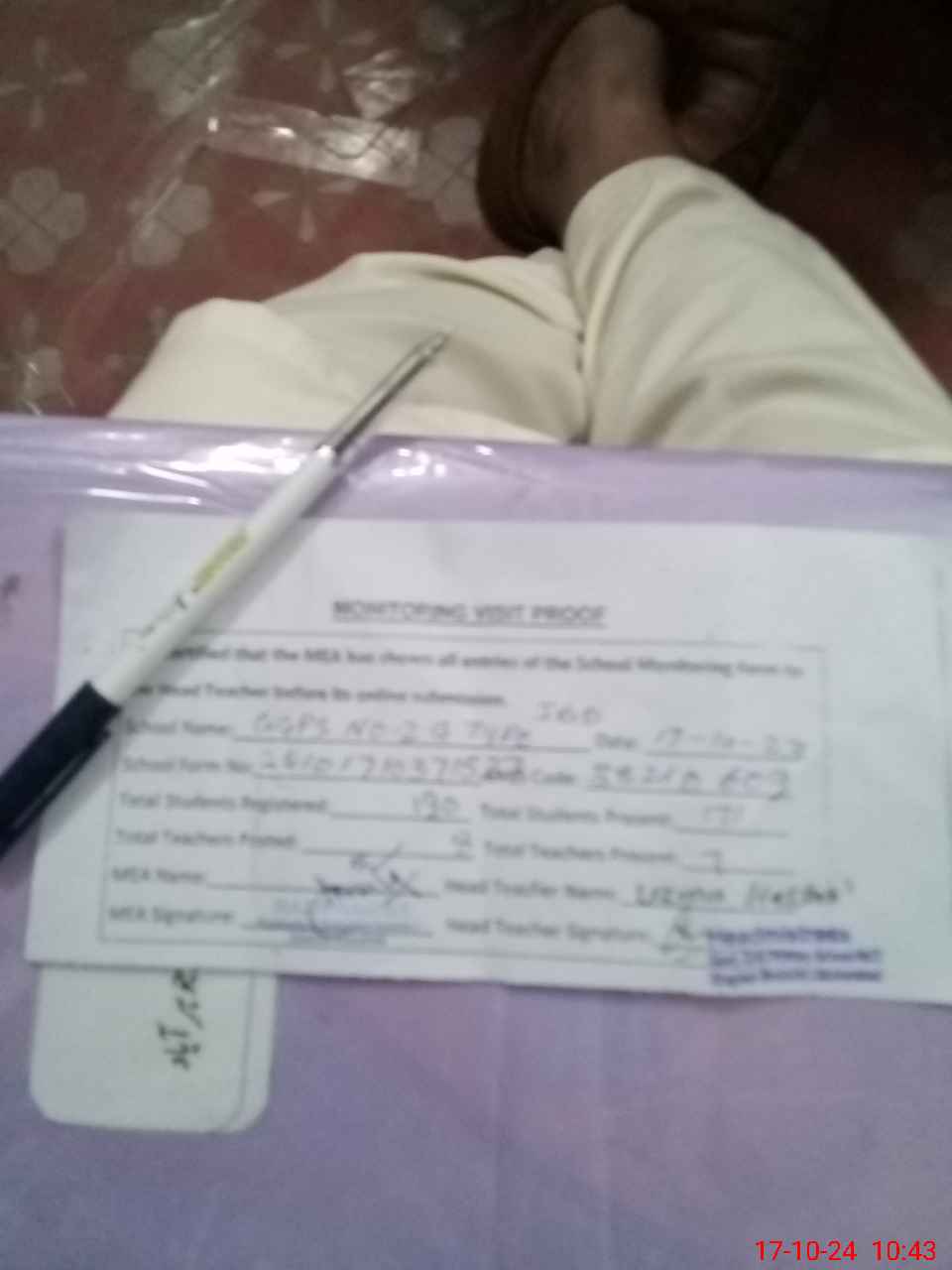 | Attendance Register | Head Teacher | MEA with School | Visit Proof |