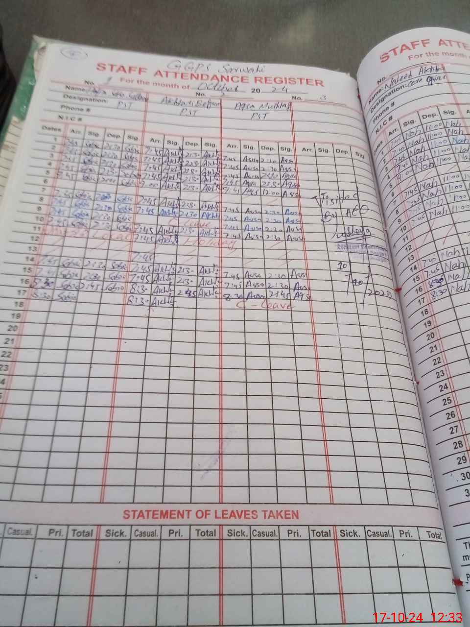 | Leave | Duty | Absent | Maternity | Medical | Ex- Pak |