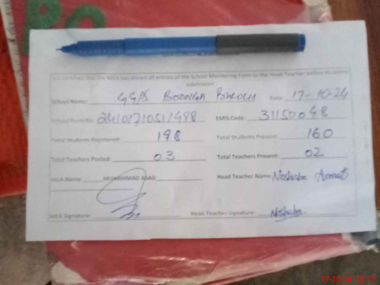| EMIS Code: 31150048 | Name of School: GGPS BONGA BALOCHAAN | |||