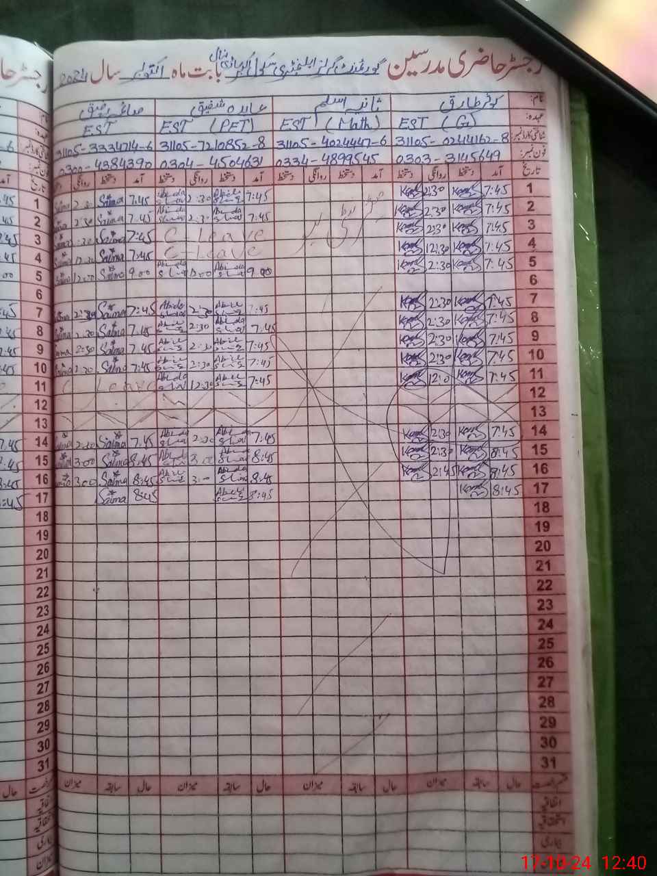 | 31**** | Sh**** Al**** Di**** | 3 | 1 | 0 | 0 | 0 | 0 | 0 | 0 | 0 | 0 | 0 | Absent (Un-Authorized) |
