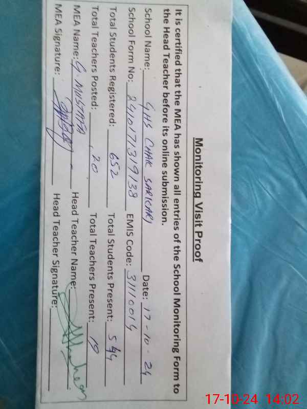 | EMIS Code: 31110014 | Name of School: GHS CHAK SARKARI | |||