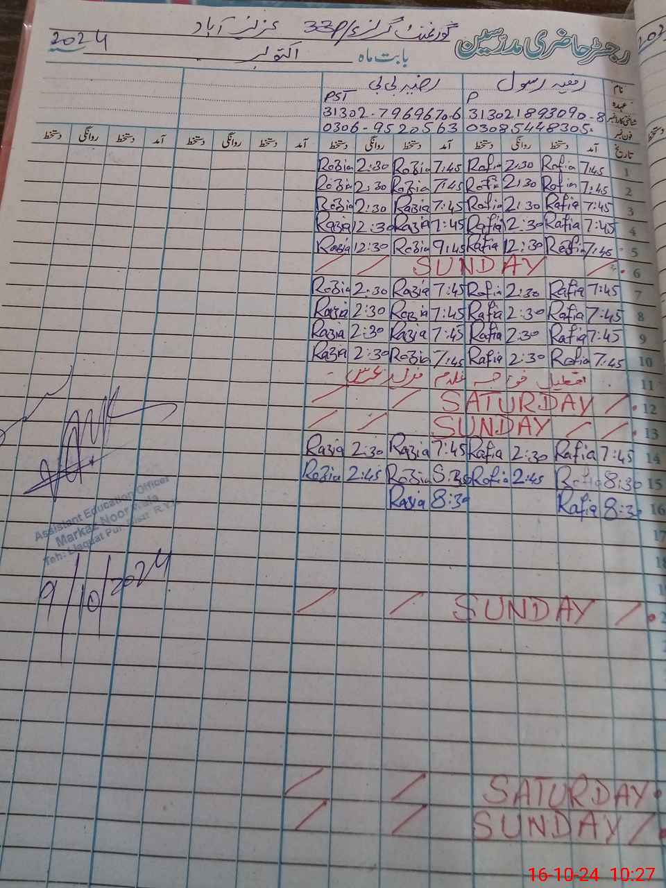 | Name: RA**** RA**** Designation: (School Headmaster's/Headmistress's) PST/PTC/JV Phone/Cell Number: 03**** |