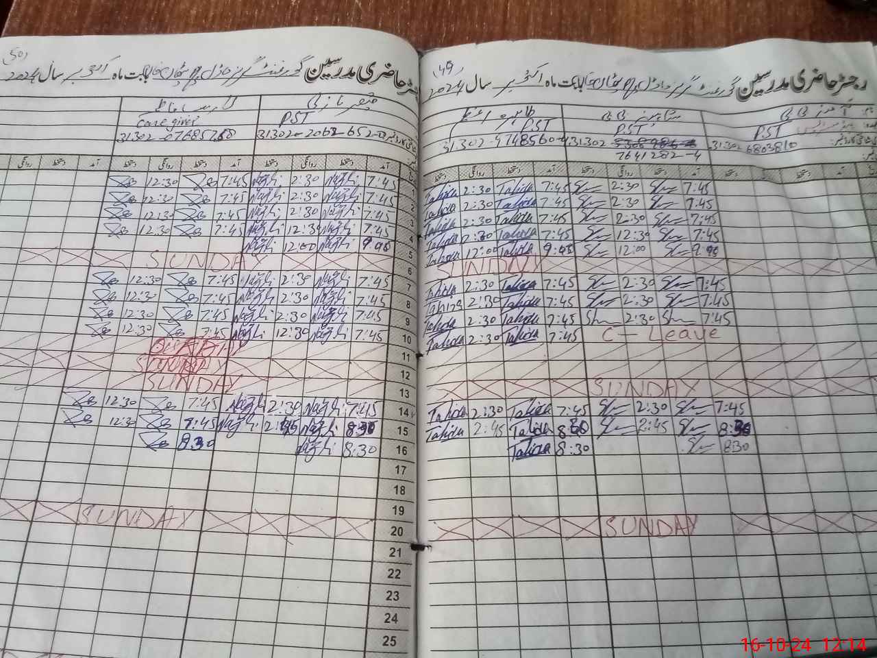 | Leave | Duty | Absent | Maternity | Medical | Ex- Pak |